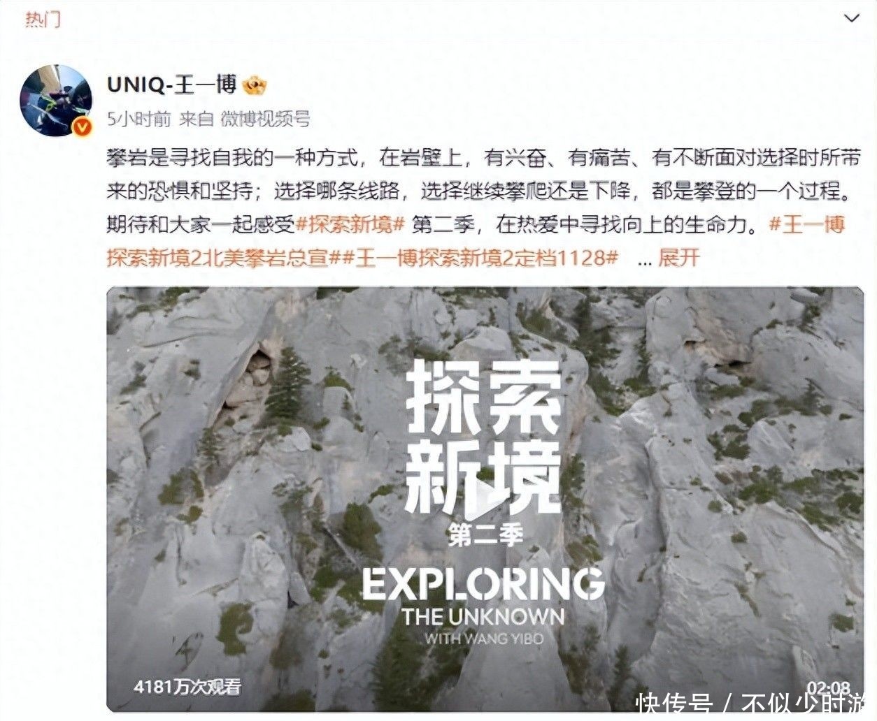 40. 11月28日节目正式上线,不妨亲自去看看,那个在千仞绝壁上咬牙前行的身影,是否能唤醒你记忆里那个曾经不服输、不愿妥协的自己?